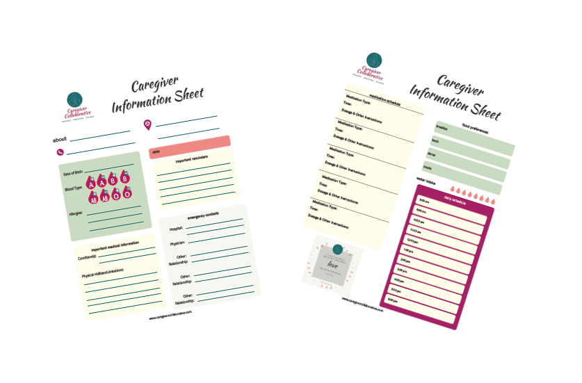 In addition, we’ve created this Caregiver Information Sheet to be ‘one-size-fits-most’, meaning that while we hope this sheet helps gives you a place to start gathering helpful information, you might find that it doesn’t all apply in your situation, or that you could really use a much more comprehensive document.