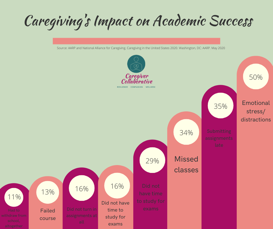What’s more alarming is that “according to the AARP report, many college administrators, college professors and even college students themselves appear to turn their backs on student caregivers. Nearly one-quarter of student caregivers interviewed said they felt “discriminated” against because of their caregiving responsibilities. And some 43 percent of student caregivers kept their caregiving responsibilities private, more than half of them because they believed their school or institution would not understand their situation.” (Horovitz, AARP, 2020).